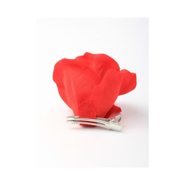 Kirkkaanpunainen kangasruusu, koko 8 cm. Kiinnitetään klipsillä.