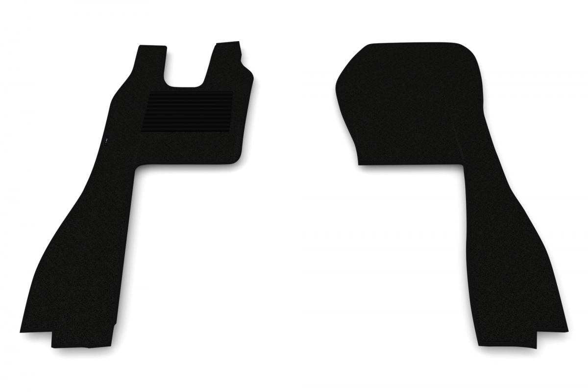 Kangasmatot, väri musta, reunoja kiertää värillinen koristenauha, setti sis. kuskin ja apukuskin lattiamatot